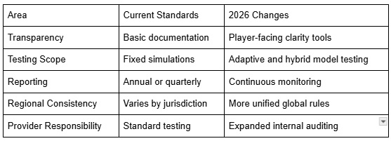 Players will see clearer fairness disclosures, more stable game behaviour and stronger protection against manipulated outcomes. New certification rules will tighten the approval process for innovative mechanics, ensuring experimental game types meet the same fairness thresholds as traditional slots or table games. Withdrawal and support processes may also integrate verification tied to certified RNG behaviour, providing another layer of assurance.